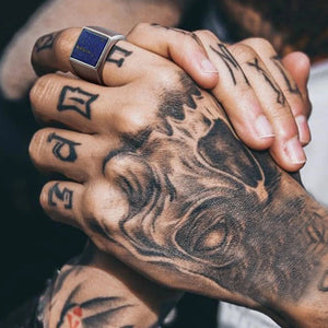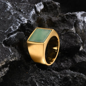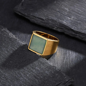 The stone, whether deep black onyx, royal blue lapis, or fiery red garnet, adds a touch of refinement and power, symbolizing courage, stability, and balance.
