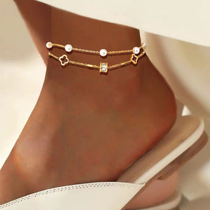 Introducing our Clover Anklet, an elegant and refined piece of jewelry designed to add a touch of sophistication to your everyday style. Crafted from high-quality materials, this anklet is built to last while retaining its shine and beauty. Whether worn alone or paired with other body jewelry, it is sure to attract attention.