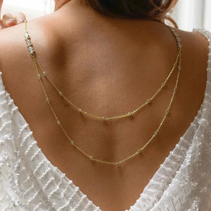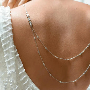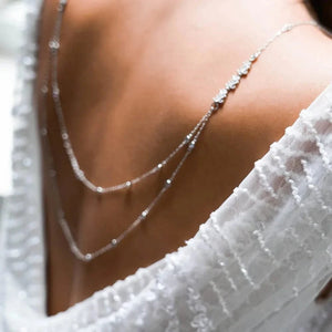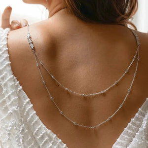 Our Double Chain Drop Back Necklace is the ultimate accessory for enhancing backless gowns and tops. With two delicate chains cascading down the back, it creates a layered, sophisticated look that exudes glamour. Perfect for weddings, formal evenings, or special occasions, this necklace ensures a stunning, graceful silhouette.