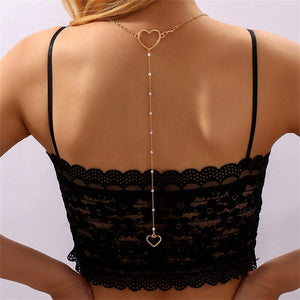 Indulge in romance with our Heart Back Necklace. Featuring a delicate heart design that rests beautifully on your back, this back necklace adds a touch of elegance and romance to any outfit. Let your love shine through with this exquisite piece. This back jewelry is a heartfelt expression of your deepest emotions. Let your love shine through with this exquisite piece.