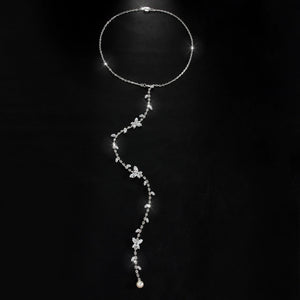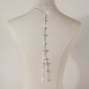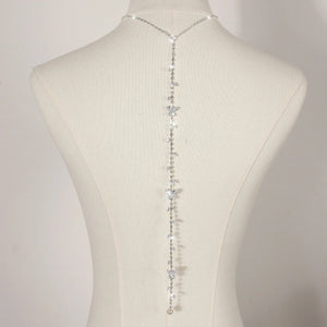 The Necklace for the Back is a delicate accessory created to enhance dresses and tops with plunging or open backs. Draping beautifully along the spine, it adds a sensual and glamorous touch that transforms any outfit into a statement of elegance. Perfect for weddings, galas, or evening events, it highlights feminine sophistication with subtle sparkle.