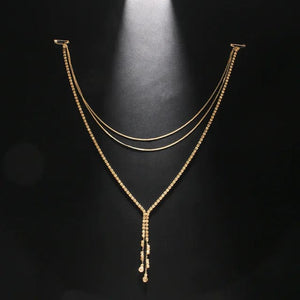 Add an extra layer of elegance to your attire with a stunning triple back necklace. This unique accessory exudes sophistication and glamour, making it the perfect complement to any outfit. Whether draped elegantly down your back or wrapped around your neck, it adds a touch of charm and sophistication to your look.