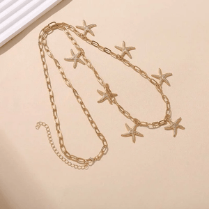 Feel like a sea goddess with this Belly Chain Starfish, a delicate, beachy piece adorned with multiple starfish charms that shimmer with every step. Available in your choice of gold or silver, it adds effortless boho elegance to any summer outfit. Perfect over swimwear, with flowy skirts or festival wear, it hugs your waist with adjustable comfort and glows under the sun. Light, feminine and full of ocean vibes, it's your new summer essential.