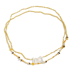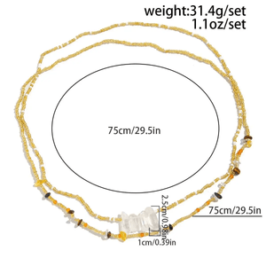 This Double Brown Pearl Belly Chain features soft brown pearls, blending nature-inspired tones with minimalist elegance. The layered look flatters the waist and brings a warm, boho-chic energy to your summer outfits. Wear it with swimwear or flowy pieces for a grounded yet luminous beachy look. Natural and refined boho jewelry perfect for summer styling.