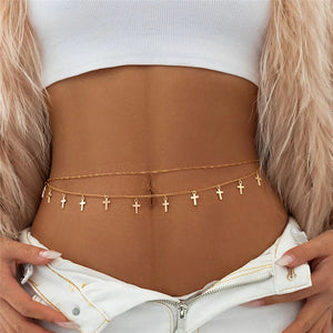 Elevate your style with our Double Cross Belly Chain, an accessory crafted for those who appreciate both fashion and symbolism. This unique dual-chain is adorned with delicately placed crosses, offering a touch of grace and faith to your ensemble. Ideal for significant events or as a daily expression of your individuality, this body chain is perfect for showcasing elegance with meaning.