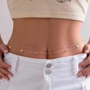 Add a touch of celestial magic to your wardrobe with our Double Star Belly Chain, an enchanting accessory designed to capture attention. This unique piece features two delicate chains, each adorned with shimmering star pendants that sprinkle stardust across your waistline. Perfect for special occasions or to brighten your everyday look, it’s ideal for those who desire a style that is both refined and inspirational.