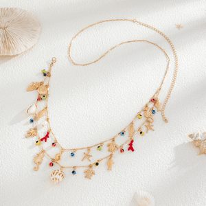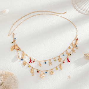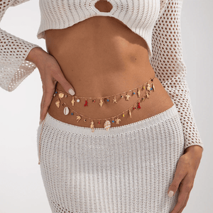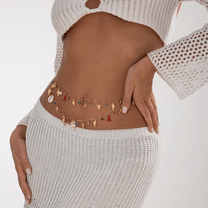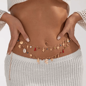 Bring the spirit of the sea to your waistline with this Golden Belly Chain, decorated with colorful ocean charms. Featuring shells, starfish, coral accents, and vibrant beads, it’s a playful, beach-ready piece that glows under the sun. Perfect over swimwear or flowy summer outfits, it adds a whimsical, elegant touch to your summer style. Lightweight, adjustable, and full of coastal charm, it’s made to move with you from sunrise to sunset.