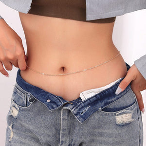 Introduce a touch of sophisticated shimmer to your look with our Silver Chain Around Waist, a striking accessory designed to bring a gleam of elegance to any ensemble. Perfect for fashion enthusiasts who appreciate the timeless appeal of silver, this waist belt features a sleek chain design that delicately encircles your waist, offering a stylish way to define your silhouette with a hint of metallic grace.