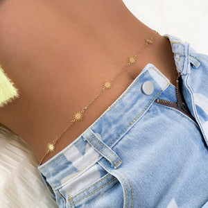 Embrace the warmth and vitality of the sun with our Sun Belly Chain, a shimmering accessory designed to bring a radiant touch to your wardrobe. This exquisite piece symbolizes the life-giving energy and unwavering strength of the sun, wrapping around your waist as a constant reminder of positivity and light. Crafted with precision and care, the Sun Belly Chain features sun-inspired charms that catch the light beautifully, perfect for those who wish to carry the brightness of the sun with them wherever they go.