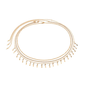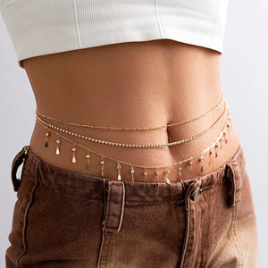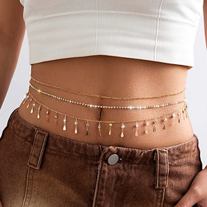 Accentuate your belly with our Triple Belly Jewel. This triple chain adds a three-dimensional touch of elegance to your silhouette. Whether it's for a glamorous evening or a sunny day out, this belly chain brings a unique sophistication to your style. This Belly Chain is perfect for those seeking a versatile piece that fits any occasion.