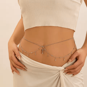 Designed for pierced navels, this Waist Chain with Belly Piercing features a central charm that attaches directly to your belly piercing. Available in gold or silver, it adds shimmer and elegance to your summer look. Perfect for beachwear, parties, or festival fits. A must-have for pierced belly babes.