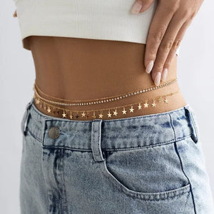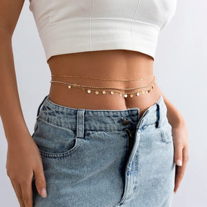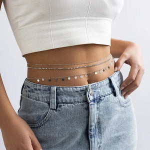 Highlight your waist with our Chain Around Belly. This body chain gracefully wraps around your midsection, adding a touch of sophistication to your silhouette. Whether it's for a special occasion or a casual day out, this accessory brings a unique elegance to your ensemble. This belly chain is perfect for those seeking an accessory that stands out and complements any style.