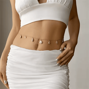 Add a golden glow to your summer style with this Delicate Gold Hip Chain, adorned with small shell charms. Lightweight and elegant, it gently hugs your hips and moves gracefully with every step, perfect for beach days or sunset parties. Ideal for styling alone or layering with other body jewelry for a trendy beach-ready aesthetic.