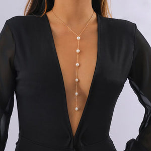 Make a statement with our Plunging Pearl Necklace, designed to add a touch of elegance and sophistication to your ensemble. Featuring lustrous pearls suspended from a delicate chain, this Jewelry Chest gracefully accentuates your neckline with timeless beauty. Whether you're dressing up for a special occasion or adding a touch of refinement to your everyday attire, our Plunging Necklace is the perfect accessory to elevate your look.