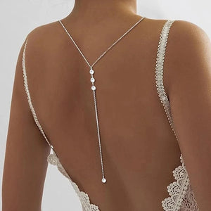 The Silver Rhinestone Back Necklace is designed to elevate your backless outfits with a touch of glamour. Embellished with shimmering rhinestones, it drapes gracefully down the back, catching the light with every movement. Perfect for weddings, evening gowns, or special events, this necklace adds a dazzling finishing touch to your look.