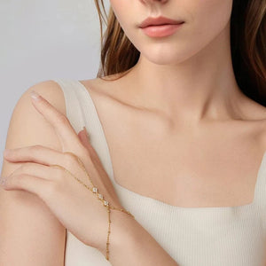 This Silver Hand Chain Jewelry captures the essence of modern elegance and feminine grace. Designed to connect a delicate bracelet and ring, it drapes smoothly across your hand, creating a look that is both subtle and captivating.