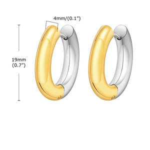 Elevate your accessory game with our stunning Two Tone Hoop Earrings, featuring the perfect blend of style and sophistication. These hoop earrings showcase a captivating contrast of two complementary tones, adding an eye-catching element to your ensemble. Whether you're dressing up for a night out or adding flair to your everyday look, these earrings are sure to make a statement.