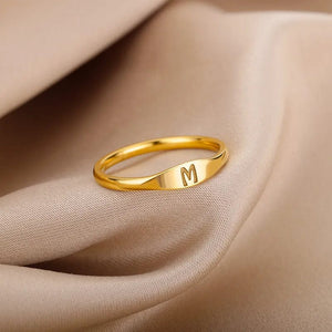 Make a statement with our elegant Gold Initial Ring, a timeless piece of jewelry that allows you to showcase your individuality and add a personalized touch to any ensemble. Crafted from high-quality gold, this ring features a delicate initial charm, beautifully designed to reflect your unique personality and style. Whether worn as a standalone piece or stacked with other rings for a trendy layered look, our Initial Ring is the perfect accessory for expressing yourself with style.