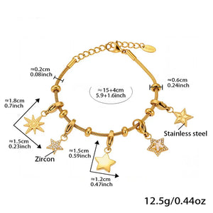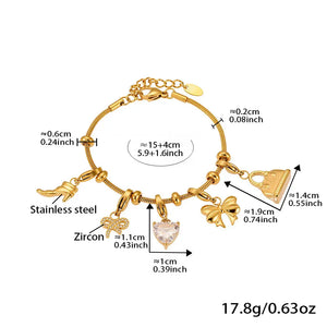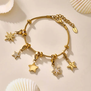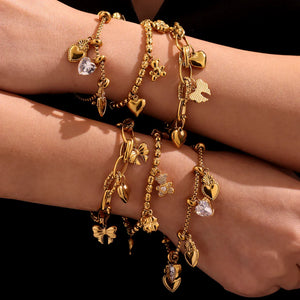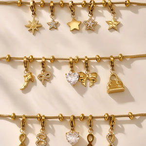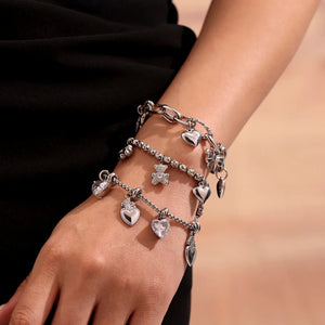 Add personality and elegance to your look with our Bracelets with Charms, a chic accessory designed to blend movement, sparkle and meaningful detail. Perfect for everyday wear or special occasions, this bracelet enhances your style with a touch of charm, femininity and modern flair. Our charms bracelet also makes a thoughtful gift for birthdays, anniversaries or any special moment.