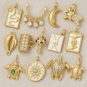 Elevate your bracelets and necklaces with Gold Charms with Rhinestones, the perfect blend of warm golden shine and dazzling sparkle. These luxurious charms add a touch of sophistication and radiance to any jewelry piece, making them ideal for both everyday looks and special occasions. Each gold charm with rhinestones adds personality and emotional significance to your jewelry.