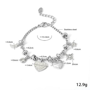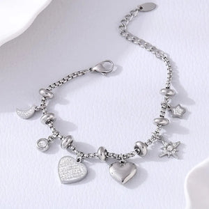 Elevate your everyday look with a Stainless Steel Charm Bracelet, a chic accessory that blends contemporary elegance with long-lasting durability. Its polished steel finish adds a sleek, sophisticated touch to any outfit, making it the perfect bracelet for women who want jewelry that stays beautiful, shiny and stylish through everyday life.