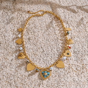 Our Necklace with Charms is the perfect accessory for anyone who wants to add personality, elegance, and a touch of symbolism to their everyday look. With its delicate chain and beautifully crafted charms, this necklace brings meaning and style together in one radiant piece. This necklace combines visual appeal with long-lasting durability.