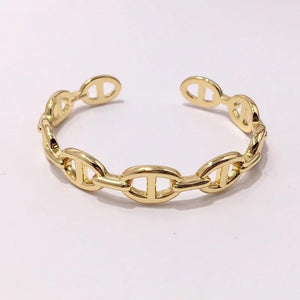 Our Open Coffee Bean Bracelet is a modern twist on the classic coffee bean motif, blending sophistication with contemporary style. Designed for the fashion-forward individual, this chain bracelet features an open design that elegantly showcases the coffee bean elements in a more airy and minimalist setting. Perfect for those who appreciate both the rich symbolism of coffee and the trends of modern jewelry, this chain bracelet adds a unique touch of elegance to any ensemble.