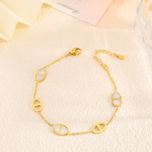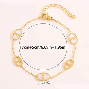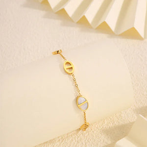 The White Gold Coffee Bean Bracelet with white mother-of-pearl blends radiant elegance with a modern, luxurious twist. Its iconic coffee-bean links, paired with the soft iridescence of mother-of-pearl, create a bracelet that feels both sophisticated and emotionally captivating. A perfect choice for anyone seeking a chic, meaningful, and light-catching accessory.