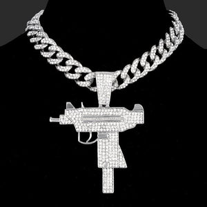Elevate your style with our Weapon Hip Hop Chain, a bold accessory that captures the essence of hip hop culture. Featuring a detailed gun-shaped pendant, this chain is perfect for those who want to make a striking impression. The intricate design and edgy aesthetic make it a standout piece, ideal for anyone looking to add a unique touch to their outfit. Whether you're performing on stage, hitting the club, or just expressing your individuality, this chain is sure to turn heads and spark conversations.