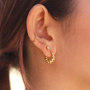 Elevate your accessory game with our stunning Twisted Hoop Earring, featuring a modern twist on the classic hoop design. These earrings showcase a twisted pattern that adds a contemporary edge to your look, making them a standout piece in your jewelry collection. Whether you're dressing up for a night out or adding flair to your everyday ensemble, these hoop earrings will add a touch of sophistication to any outfit.
