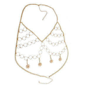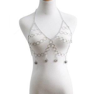 Channel your inner free spirit with our Bohemian Chain Bralette, a captivating blend of boho charm and modern flair. Adorned with delicate chains and intricate details, this bralette exudes effortless style and eclectic charm. Whether paired with denim shorts for a festival-ready ensemble or layered under a flowy kimono for a bohemian chic look, it adds a touch of whimsy to any outfit.