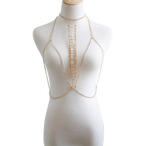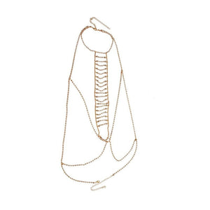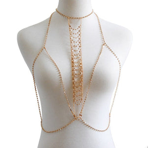Enhance your allure with our Chest Chain, a captivating accessory designed to adorn your décolletage with elegance. Crafted with sleek chains, this piece adds a touch of sophistication to any outfit, effortlessly accentuating your natural beauty. Whether worn alone as a statement piece or layered with other necklaces for a personalized look, it promises to elevate your style with its chic design.