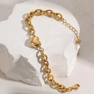 Introducing the essence of sophistication and heartfelt sentiment - our Link Bracelet with Heart Charm. This exquisite piece is the perfect blend of timeless style and emotional expression, designed to captivate and charm. Whether it's a treat for yourself or a gift for someone special, this chain bracelet is a symbol of love, connection, and timeless elegance.