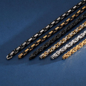 Step up your style with our Men's Byzantine Necklace, a piece that exemplifies intricate design and timeless elegance. The Byzantine chain is renowned for its complex and interwoven links, creating a luxurious texture that catches the eye. Perfect for both casual and formal occasions, this necklace adds a touch of sophistication to any outfit. Its timeless appeal ensures it remains a standout piece in your jewelry collection for years to come.