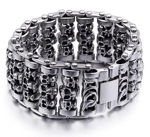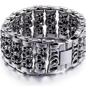 Embrace your edgy side with our Men's Motorcycle Chain Skull Bracelet. This striking accessory combines the rugged appeal of a motorcycle chain with the rebellious spirit of a skull charm. Perfect for those who appreciate bold and unconventional fashion, this motorcycle bracelet is sure to make a powerful statement and elevate your style.