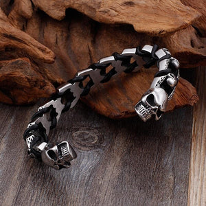 Discover a striking accessory with our Mens Skull Open Bracelet. Designed for those who love to stand out, this men's bracelet features a unique open design adorned with detailed skull motifs at each end. It’s a bold statement piece that adds an edge to any look, whether you're going for a casual vibe or a more dressed-up style. This bracelet for men is the perfect way to express your individuality and fearless attitude.