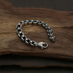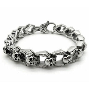 Elevate your style with our Mens Sterling Silver Skull Bracelet, a perfect blend of striking design and edgy elegance. This chain bracelet features intricately crafted skull motifs made from premium sterling silver, making it a standout piece in any jewelry collection. Ideal for men who want to express their boldness, this bracelet for men adds a touch of rebellious charm to any outfit, whether you're dressing up for a night out or adding a unique accent to your everyday look.
