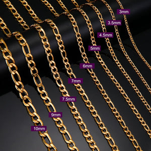 Step into a world of sophistication with our Men's Gold Figaro Chain. This exquisite piece of jewelry features the classic Figaro chain design, characterized by its unique pattern of three short links followed by one longer link. The Figaro chain seamlessly blends traditional elegance with contemporary style, making it a perfect accessory for any occasion. Whether you're dressing up for a formal event or adding a touch of luxury to your everyday attire, this chain is sure to impress.