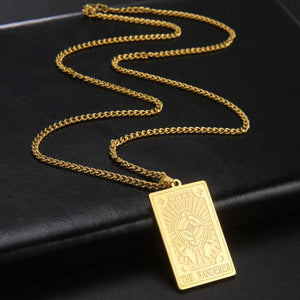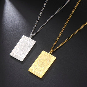 Discover the allure of mysticism with our Tarot Card Necklace Men. This captivating piece features a finely detailed tarot card pendant, each symbolizing different aspects of life, destiny, and intuition. Perfect for both casual and formal attire, this chain necklace adds a touch of enigmatic sophistication to any outfit. Whether you're a fan of tarot or appreciate its rich symbolism, this necklace is a unique way to express your spiritual side.