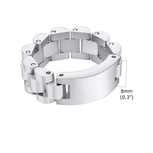 Crafted from premium stainless steel, it offers exceptional durability while maintaining a clean, polished finish. Resistant to scratches, tarnishing, and corrosion, this curb chain ring for men is designed to keep its shine even with regular wear.
