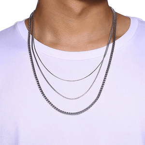 Make a sleek statement with our Mens Box Chain Necklace. Crafted with precision, this chain necklace features a series of square links that create a modern and sophisticated look. Its versatility allows it to seamlessly transition from day to night, making it the perfect accessory for any occasion. Whether you're a fashion enthusiast or someone who appreciates timeless elegance, this necklace for men is a must-have addition to your collection.