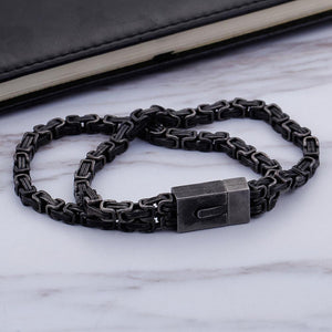 Enhance your style with our Men's Black Chain Bracelet. This striking accessory combines the sleek elegance of a black finish with the modern appeal of chain links, creating a versatile piece that complements any outfit. Perfect for men who appreciate contemporary sophistication, this bracelet for men adds a touch of boldness and refinement to both casual and formal looks. Whether you're heading to a business meeting or a night out, this bracelet is the ultimate expression of modern masculinity.