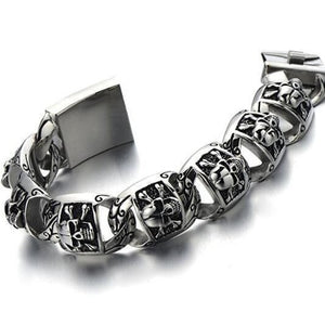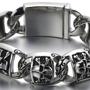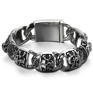 Stand out from the crowd with our Skull Chain Bracelet. This striking accessory combines the classic appeal of chain bracelets with the daring allure of intricately designed skull motifs. Perfect for men who love to make a statement, this bracelet for men adds an edgy and bold touch to any outfit. Whether you're dressing up for a night out or adding a unique element to your everyday style, this chain bracelet is the ultimate expression of your rebellious spirit.
