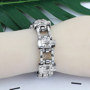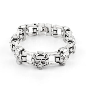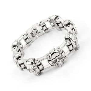 Embrace your edgy side with our Bike Chain Bracelet with Skull for Men. This striking accessory combines the rugged appeal of a bike chain with the rebellious spirit of a skull charm. Perfect for those who appreciate bold and unconventional fashion, this motorcycle bracelet is sure to make a powerful statement and elevate your style.