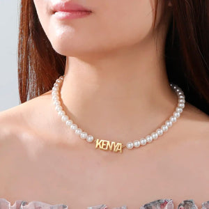 Introducing our Pearl Necklace with Name – a fusion of timeless elegance and personalized charm. This exquisite piece features a strand of lustrous pearls, each carefully selected for its beauty and shine, leading to a custom name pendant that makes this chain necklace truly your own. Whether it's your name, the name of someone special, or a word that holds deep meaning, this necklace transforms a classic accessory into a personal statement of style.