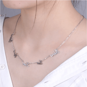 Introducing our Silver Name Chain – a symbol of individuality and timeless elegance. This exquisite piece of jewelry allows you to carry your identity or that of someone special close to your heart. Crafted from high-quality silver, it not only adds a touch of sophistication to any outfit but also serves as a meaningful keepsake that can be cherished for years to come.