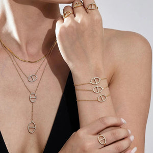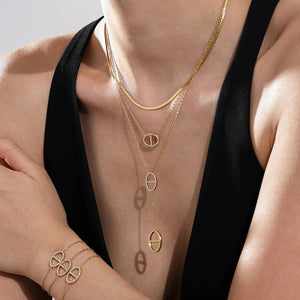 The Stainless Steel Coffee Bean Chain is a statement piece featuring the iconic coffee bean link design, known for its strength and elegance. With its distinctive shape and polished finish, this chain is perfect for adding a touch of sophistication to everyday outfits or special occasions.