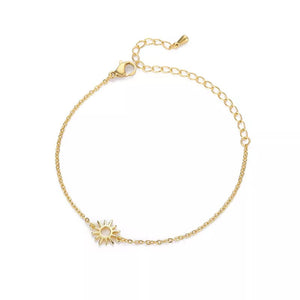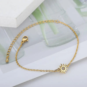 Illuminate your style with our Gold Sun Bracelet, a radiant accessory that captures the essence of the sun's warmth and energy. Crafted with meticulous attention to detail, this bracelet features a captivating sunburst design that symbolizes vitality and positivity. Each intricately crafted sun charm exudes a sense of brightness and optimism, making it the perfect accessory to brighten up any outfit.