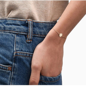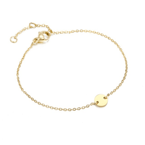 Introducing our Thin bracelet with round, a delicate and stylish accessory that adds a subtle touch of sophistication to your ensemble. Crafted with meticulous attention to detail and adorned with a sleek round charm, this chain bracelet exudes understated glamour and timeless appeal. Whether worn alone for a minimalist look or layered with other bracelets for a more personalized style, it effortlessly elevates your everyday attire.