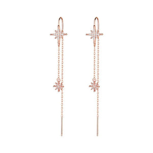 Our Star Threader Earrings showcase a mesmerizing design, with each earring adorned with a charming star motif. Crafted with attention to detail, these chain earrings capture the beauty and allure of the night sky, making them a celestial-inspired accessory that's perfect for any occasion. The intricate star detailing adds a touch of sophistication, making these threader earrings a timeless addition to your jewelry collection.